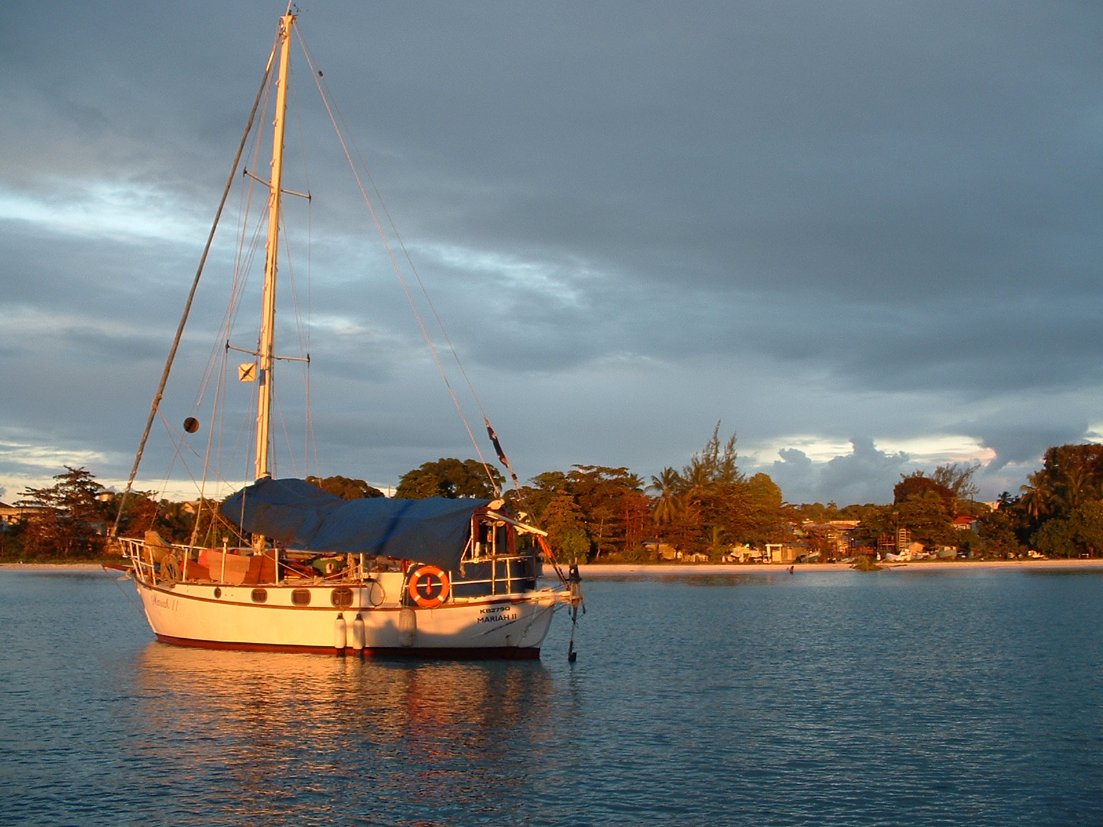 On Mariah, we on the step (above the engine), to step in/out, we set a mosquito coil to burn through the night, so those pesky mozzies wouldn’t bother us. It was during the early years of cruising and we hadn’t reached the dizzy heights of organising mosquito nets for the main entrance yet.