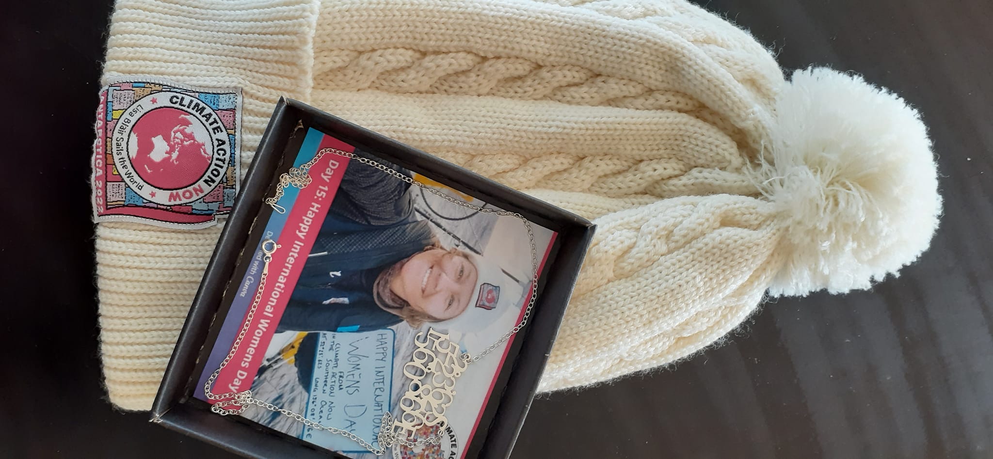 They really know how to put on an evening, drinks, nibbles and a perfect venue for us all to sit together and gasp. The Club presented Lisa with a necklace with the Lat/Long of where she was (during her record around Antarctica) on International Women’s Day. A duplicate necklace was raffled… It was a wonderful surprise when she drew out my ticket (without looking), and I proudly wear the meaningful jewellery, made by the skillful Celia Davey (fellow sailor).
